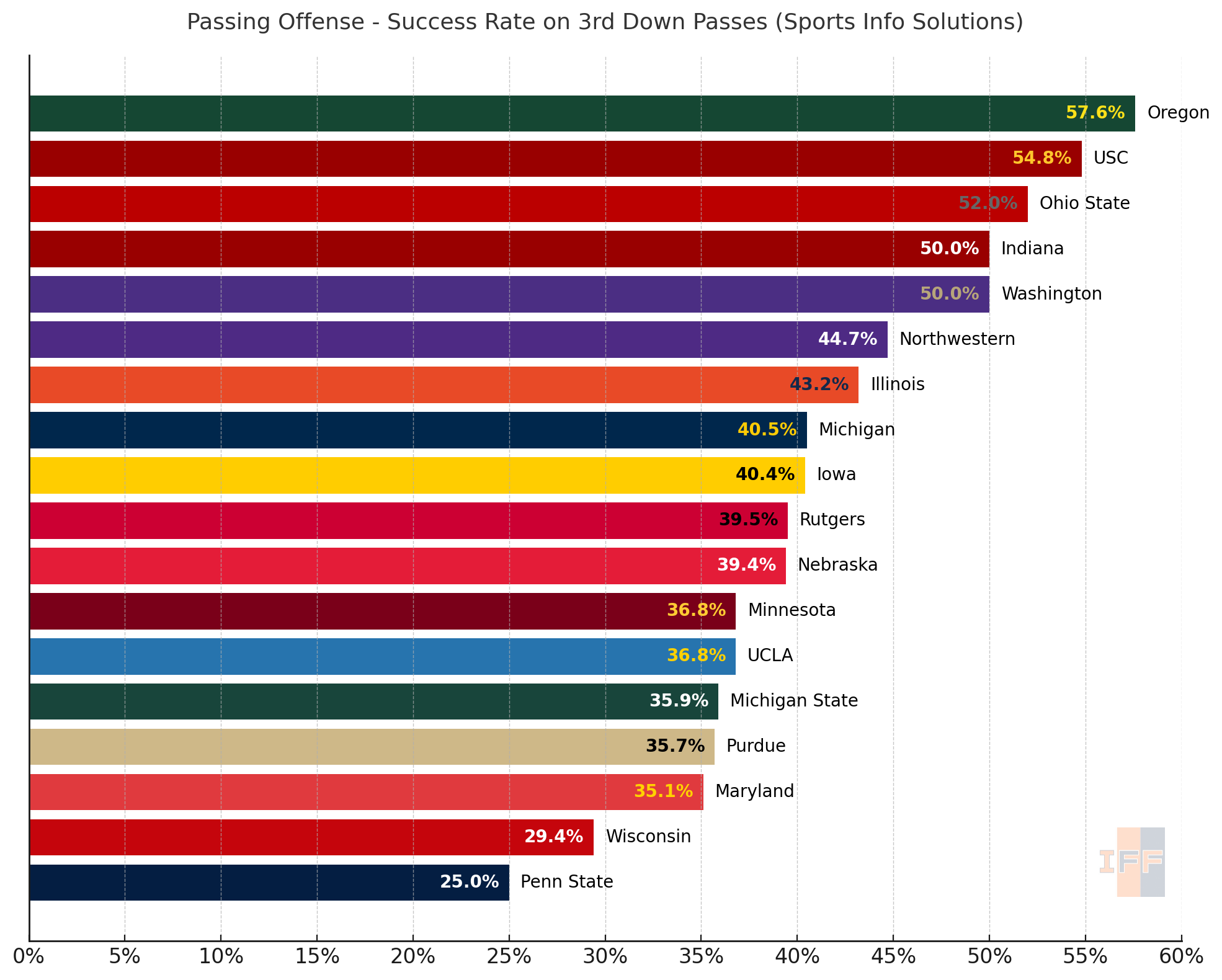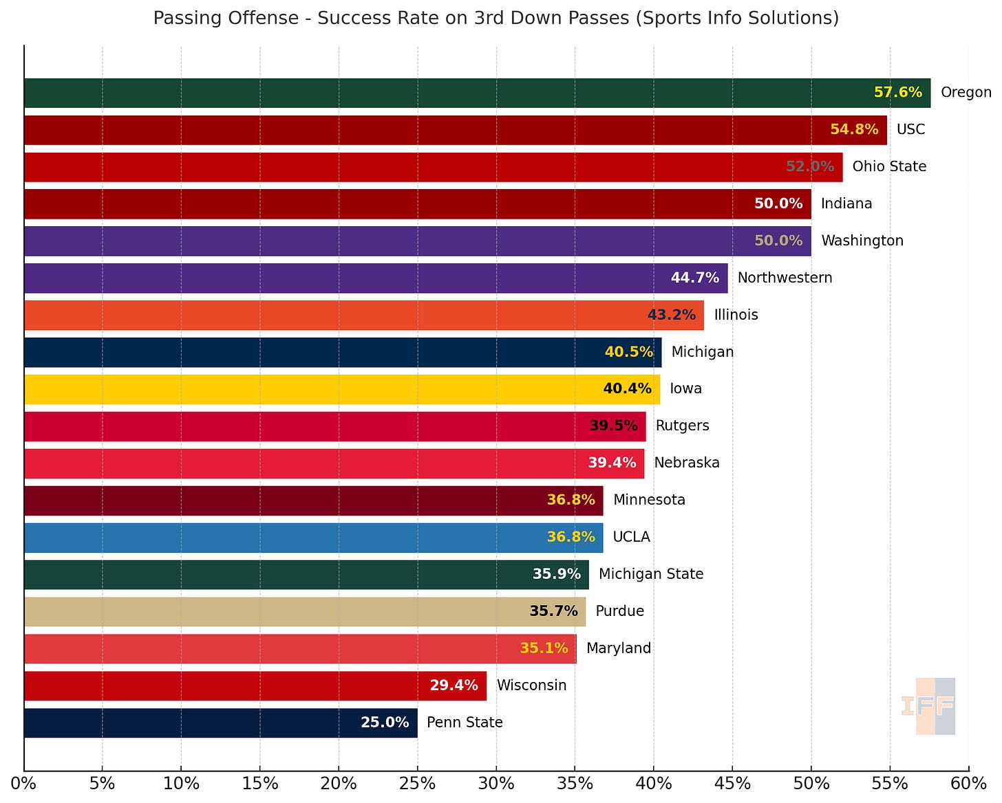 And yet, here’s the number: Success rate on 3rd-down passes this season. How often Big Ten teams create a positive play when throwing on 3rd down.